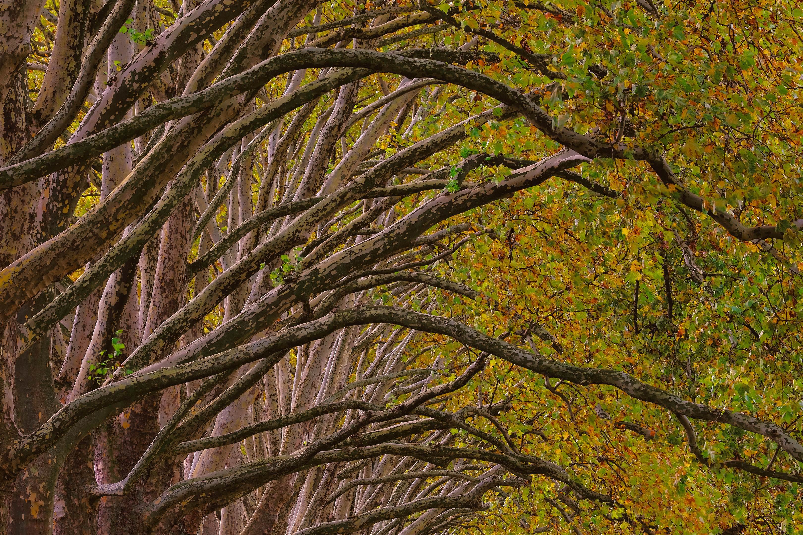 Eventuell die Sättigung etwas hochdrehen? Dann wäre der Kontrast zu den schwarzen Stämmen heftiger.