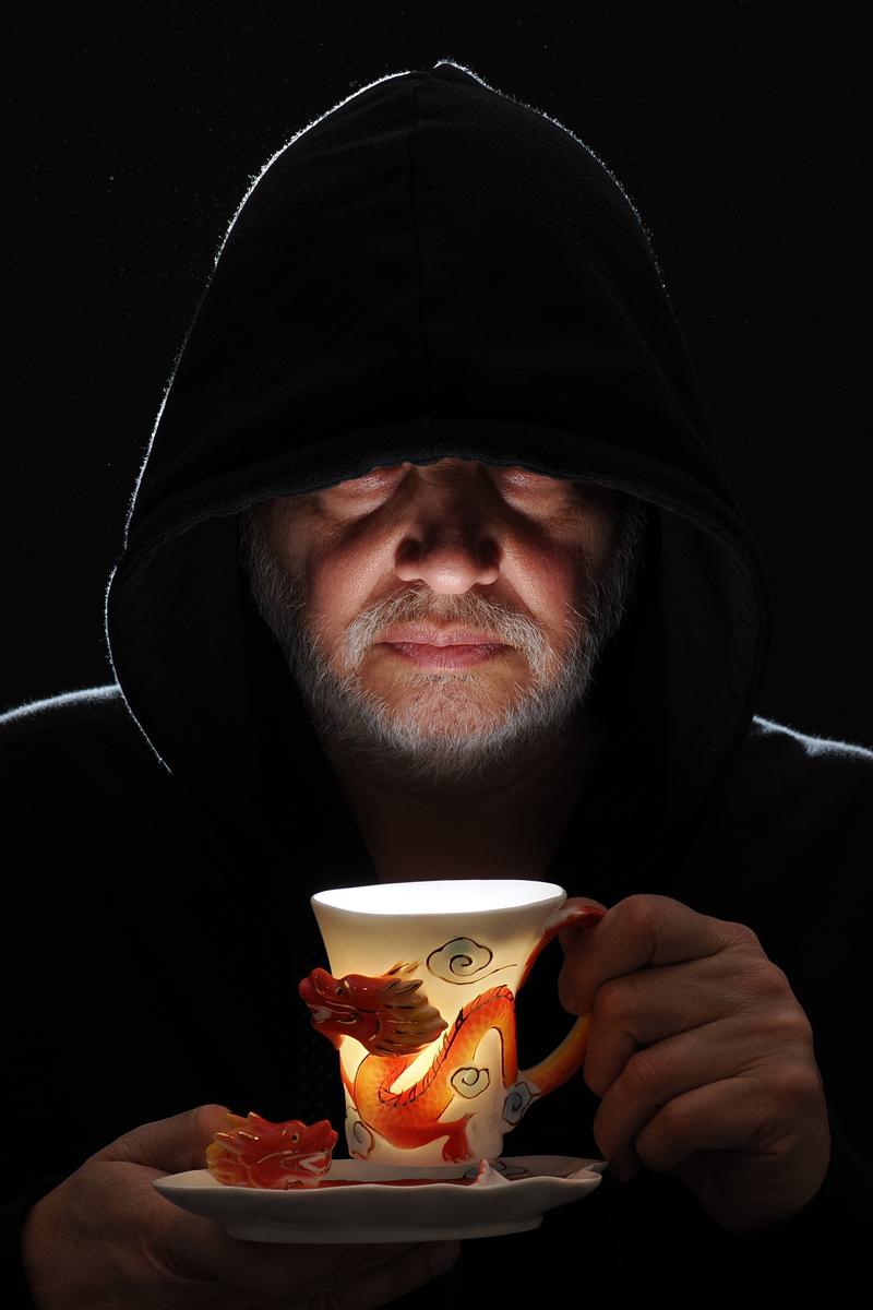 Der Blitz steckt in der Tasse Richtung Drachenkopf gerichtet, wird über ein Fernauslöser ausgelöst, der auf einen anderen Fernauslöser für den Blitz im Hintergrund aufgesteckt worden ist. Hat Super funktioniert.Um das Licht ein bisschen abzuschwächen und weicher zu machen habe ich Papiertaschentücher in der Tasse über den Blitz gelegt, als eine Art Deckel.