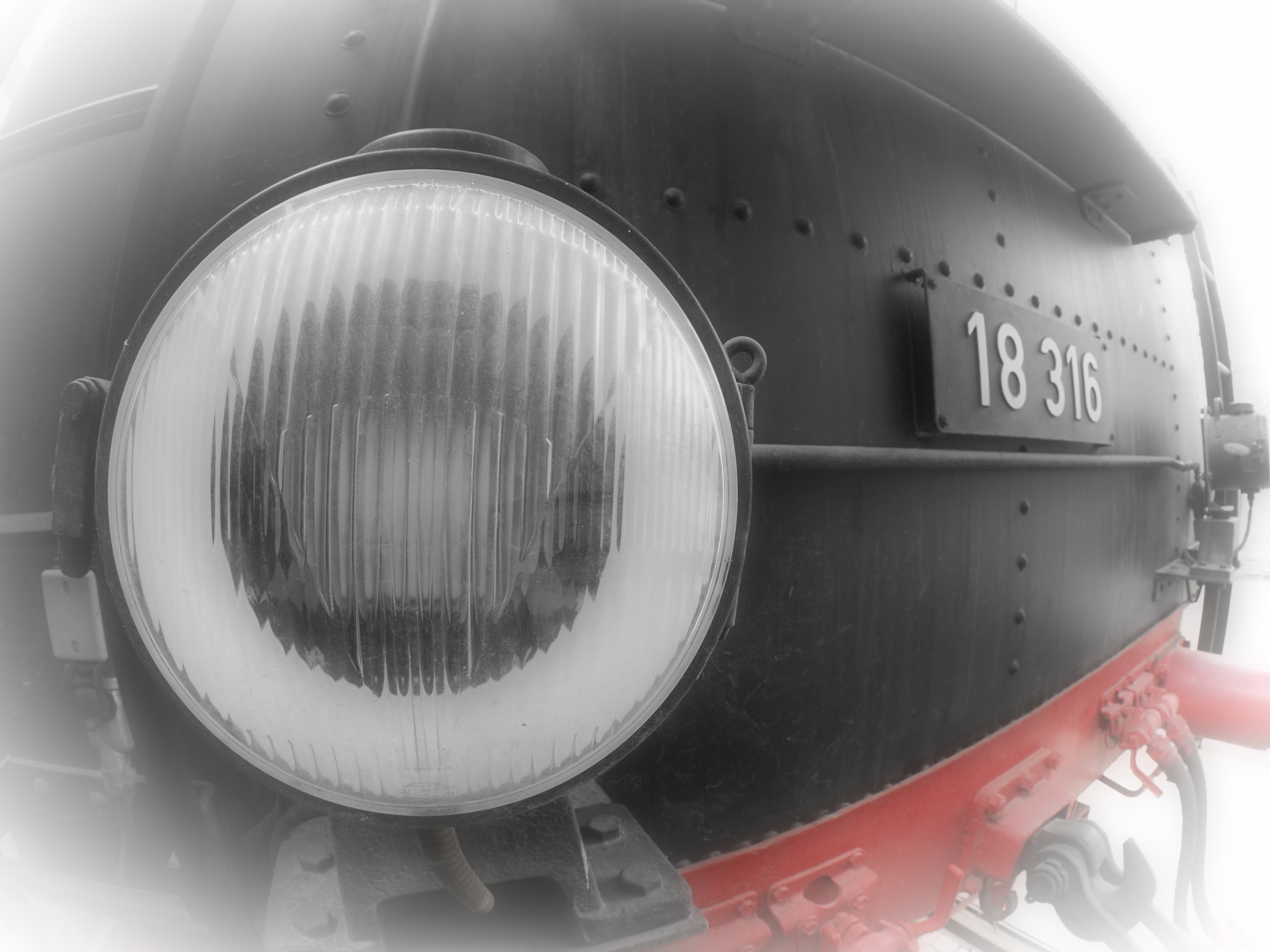 Das hier ist ein Teil einer alten Lok im Mannheimer Technoseum. So mit Nebelimitat Weißrandeffekt und Weichzeichner. Fehlt nur (noch) der gelbe Lichterglanz in der Lampe…