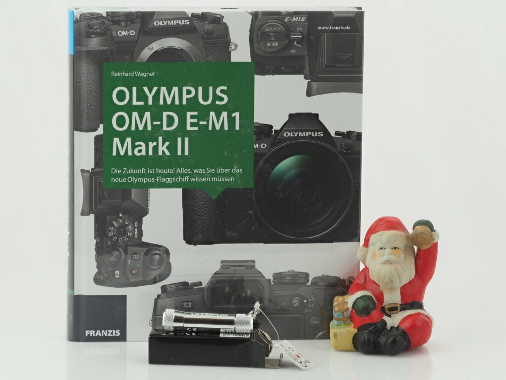 Das Buch zur E-M1II. Original verschweisst. Mittlerweile, so schräg das ist, ultraselten. Bei Amazon verlangen sie für ein gebrauchtes Exemplar fast hundert (!) Euro. Original neu ist das eine Kapitalanlage für schlechte Zeiten. Und dazu gibt’s noch eine kleine Taschenlampe von Olympus.