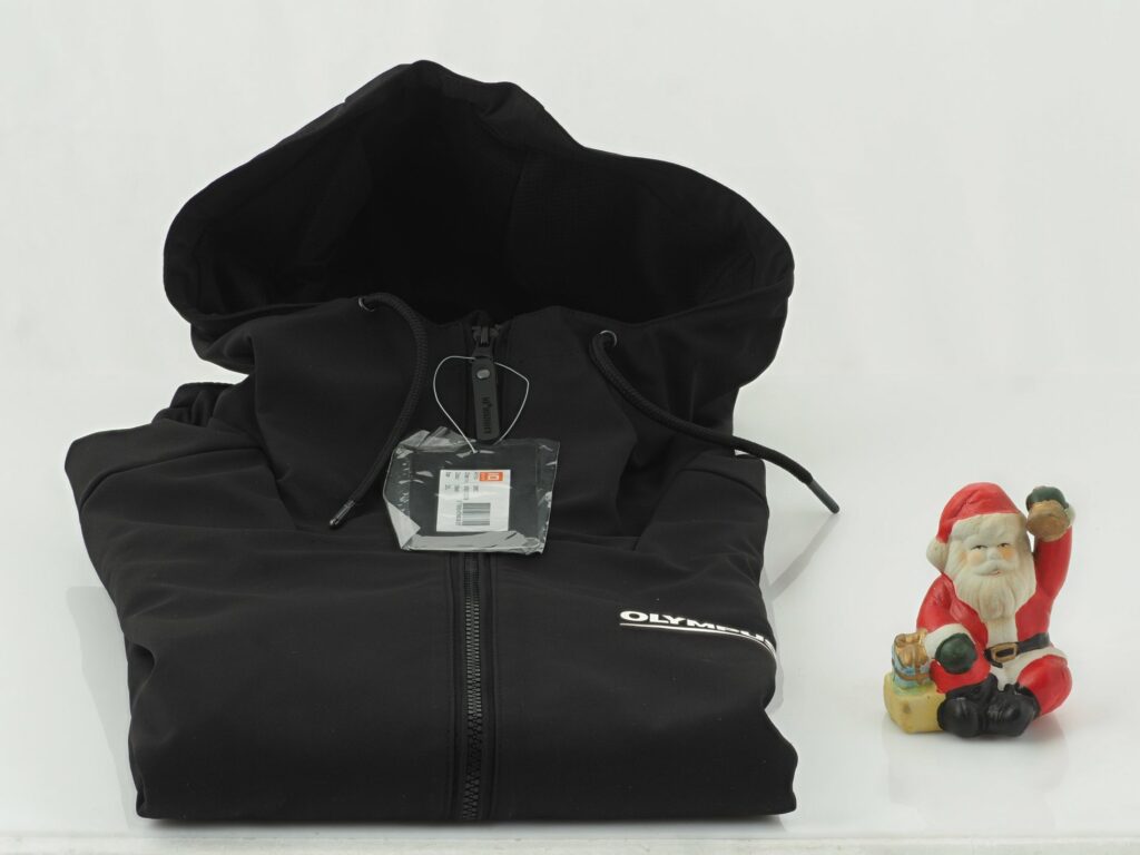 Eine Softshell-Kapuzenjacke von Olympus. Größe XXL. In Schwarz. Kommt natürlich vor allem in Verbindung mit dem schwarzen Mund/Nasenschutz besonders cool. Natürlich brandnew. Es handelt sich hier nicht um die „normalen“ Olympus-Softshell-Jacken, die aus Zingst bekannt sind. Sondern eben um Kapuzenjacken.