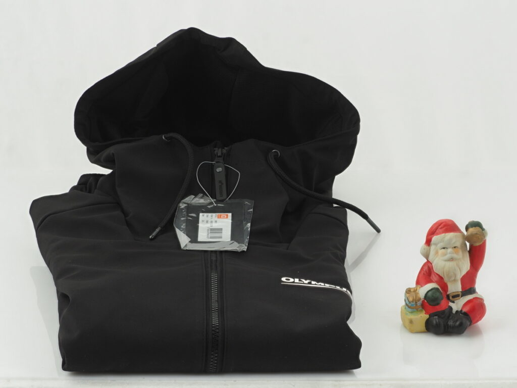 Und nochmal eine Softshell-Kapuzenjacke von Olympus. Diesmal Größe XL. In Schwarz. Nicht abgebildet: Hier gibt’s einen Olympus-MNS dazu. Natürlich alles brandnew. Es handelt sich hier nicht um die “normalen” Olympus-Softshell-Jacken, die aus Zingst bekannt sind. Sondern eben um Kapuzenjacken. Wer wissen will, wie die Jacke „in Betrieb“ aussieht. Der kucke bei Visionary Peter Forsgard vorbei. Der hat sie bei seinem Vogelknipser-Video an. Natürlich nicht die, um die es hier geht – denn die ist ja brandneu.