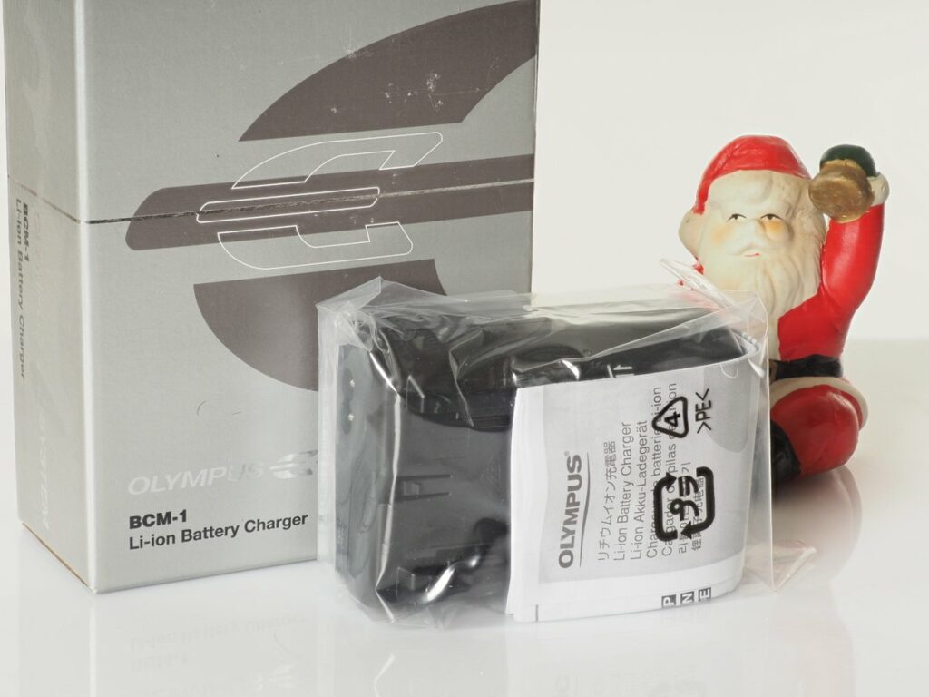 Ein Olympus BCM-1, originalverpackt, unbenutzt. Schnellladegerät für BLM-Akkus.